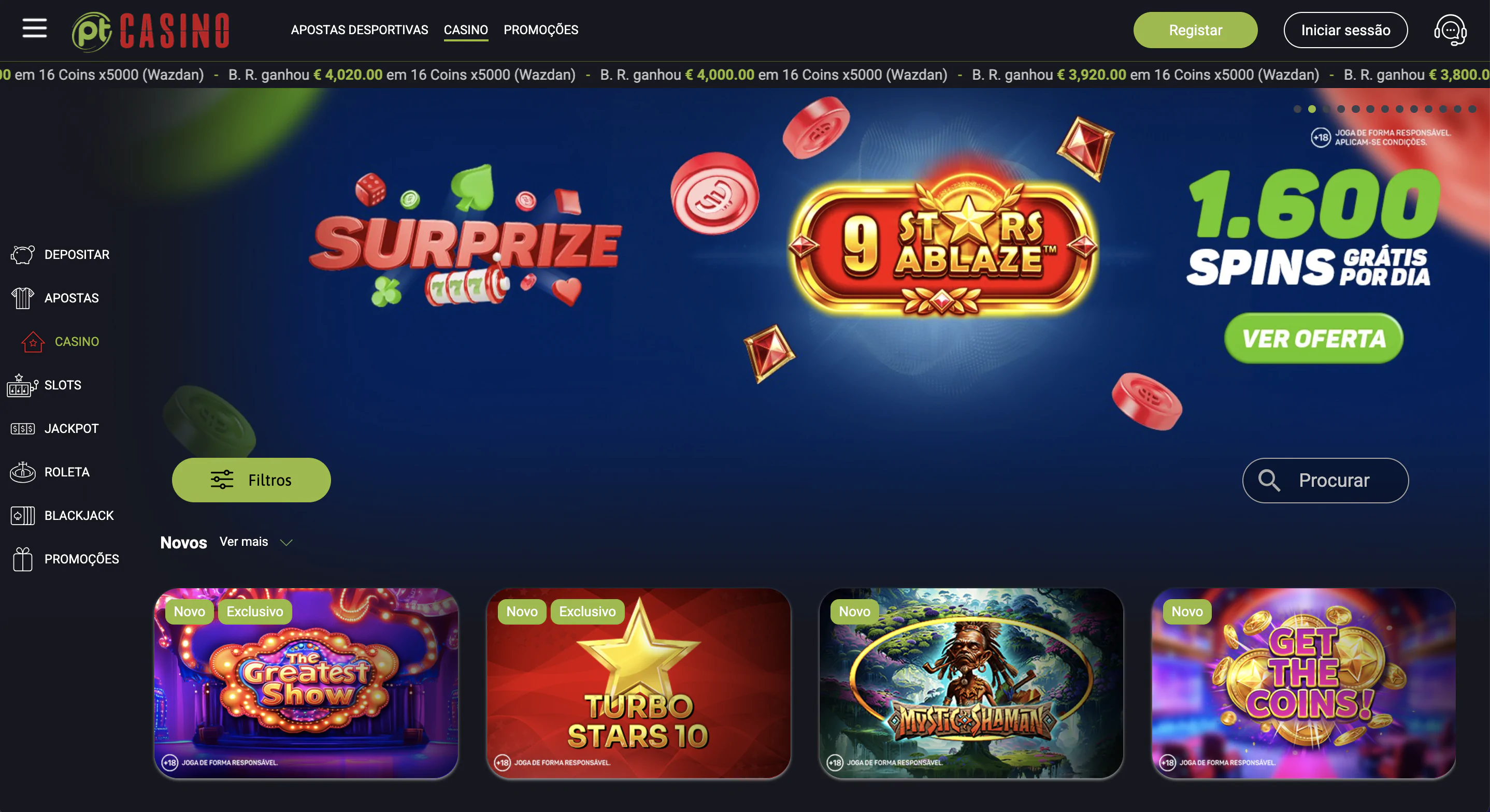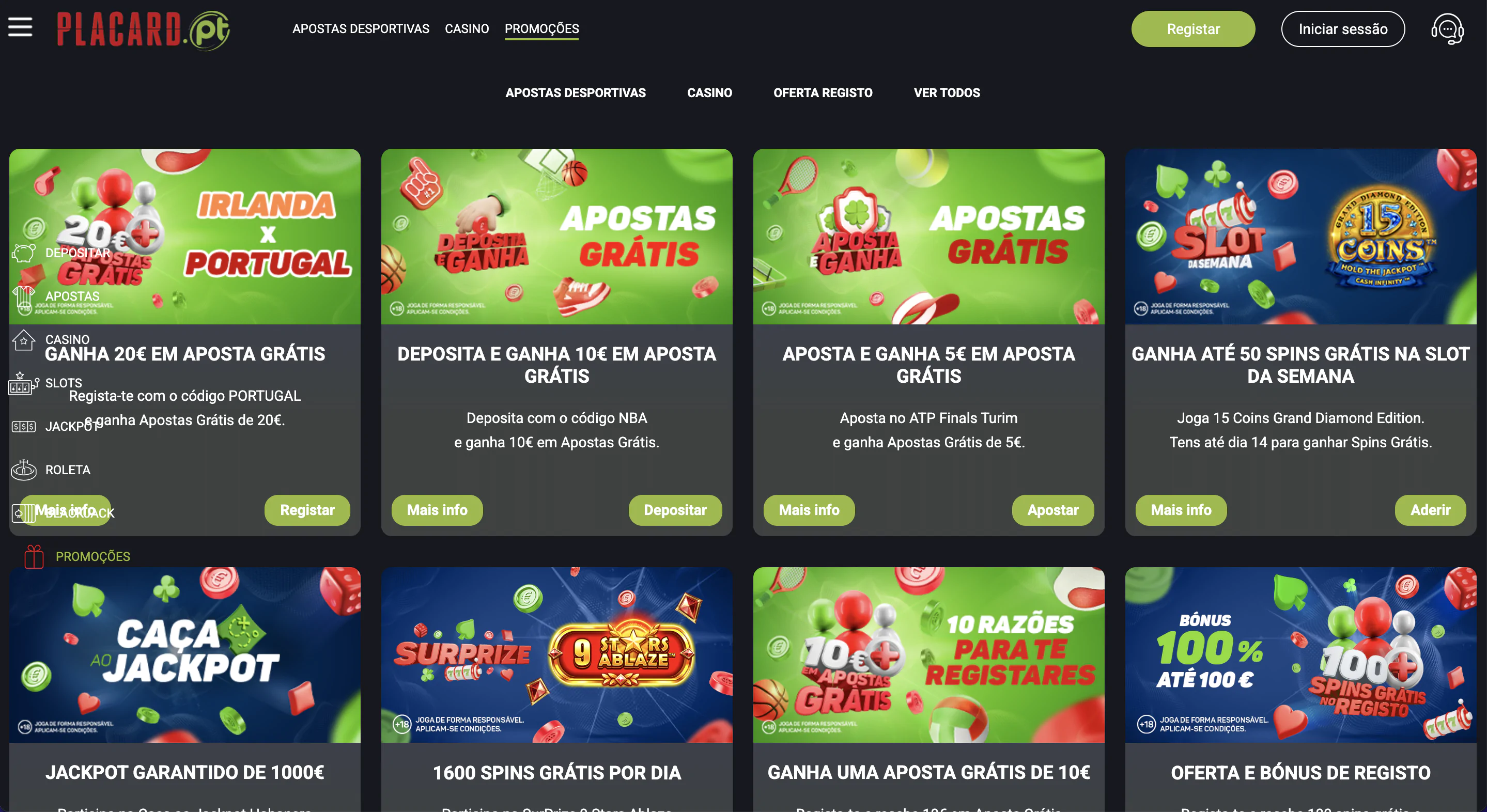 Na imagem seguinte, podemos ver a oferta para jogos de Casino que o Placard disponibiliza ao aceder a https://www.placard.pt/casino .